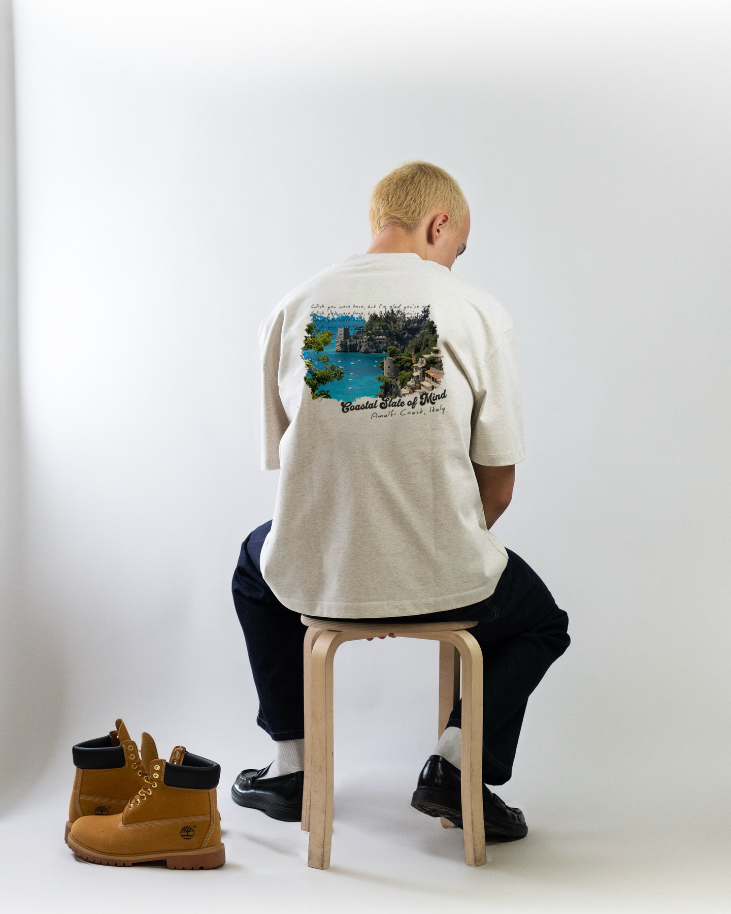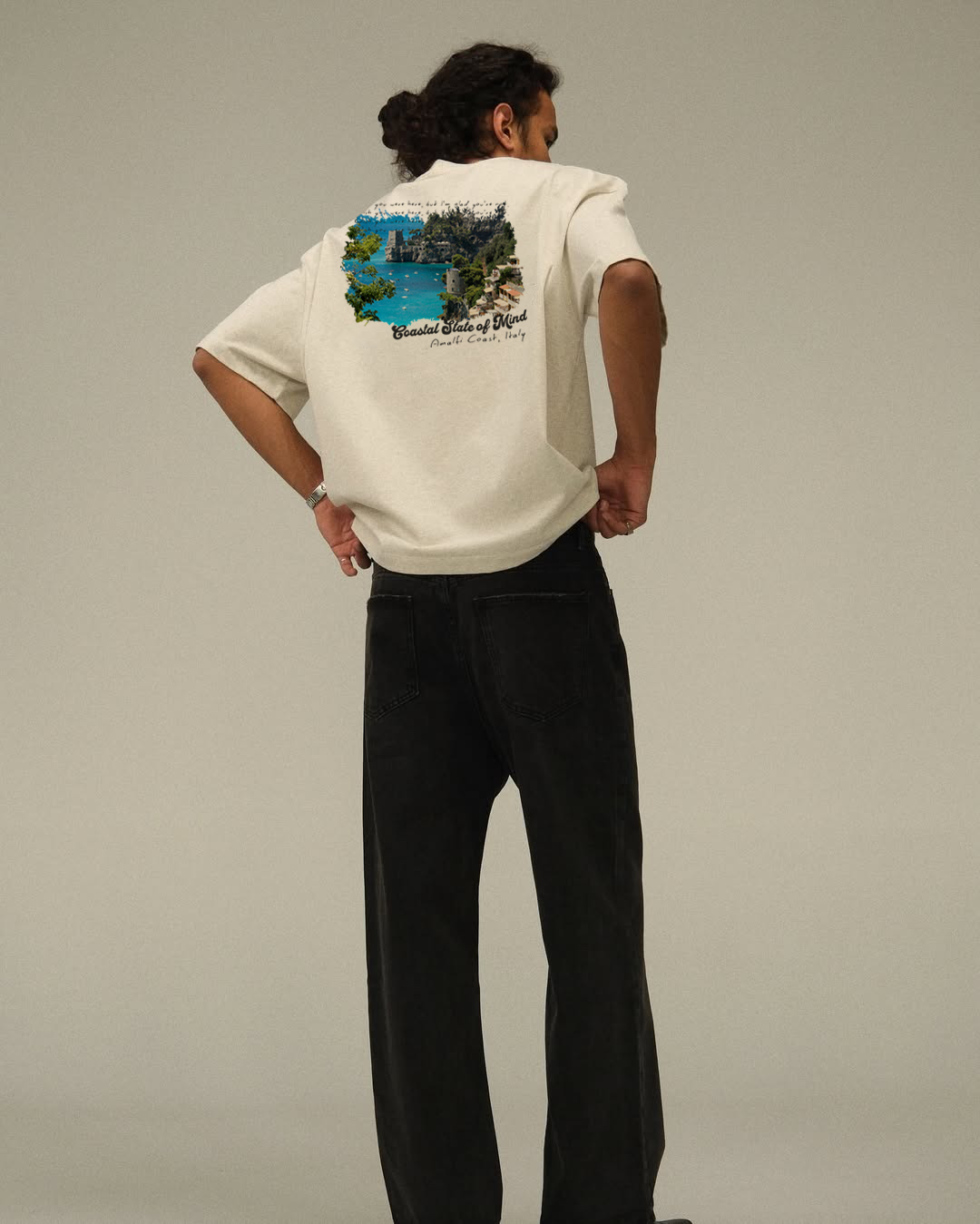 Inspired by summer road trips and late afternoon stopovers, this tee captures that postcard-perfect moment from the Amalfi Coast. Faded cream cotton meets sun-drenched nostalgia, with a relaxed fit that’s made to feel like a memory. Whether you're oceanside or just daydreaming of it, this one’s for the calm, the coast, and the state of mind you wish you could stay in a little longer.