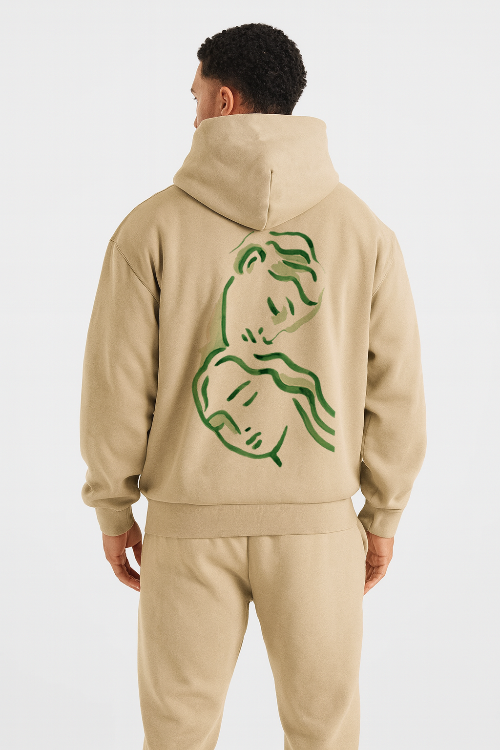 A calm, oversized beige hoodie with gentle line-art that feels like a quiet reminder to breathe.