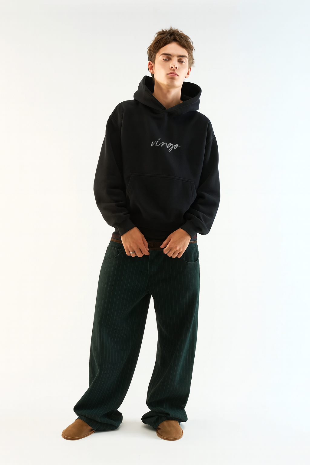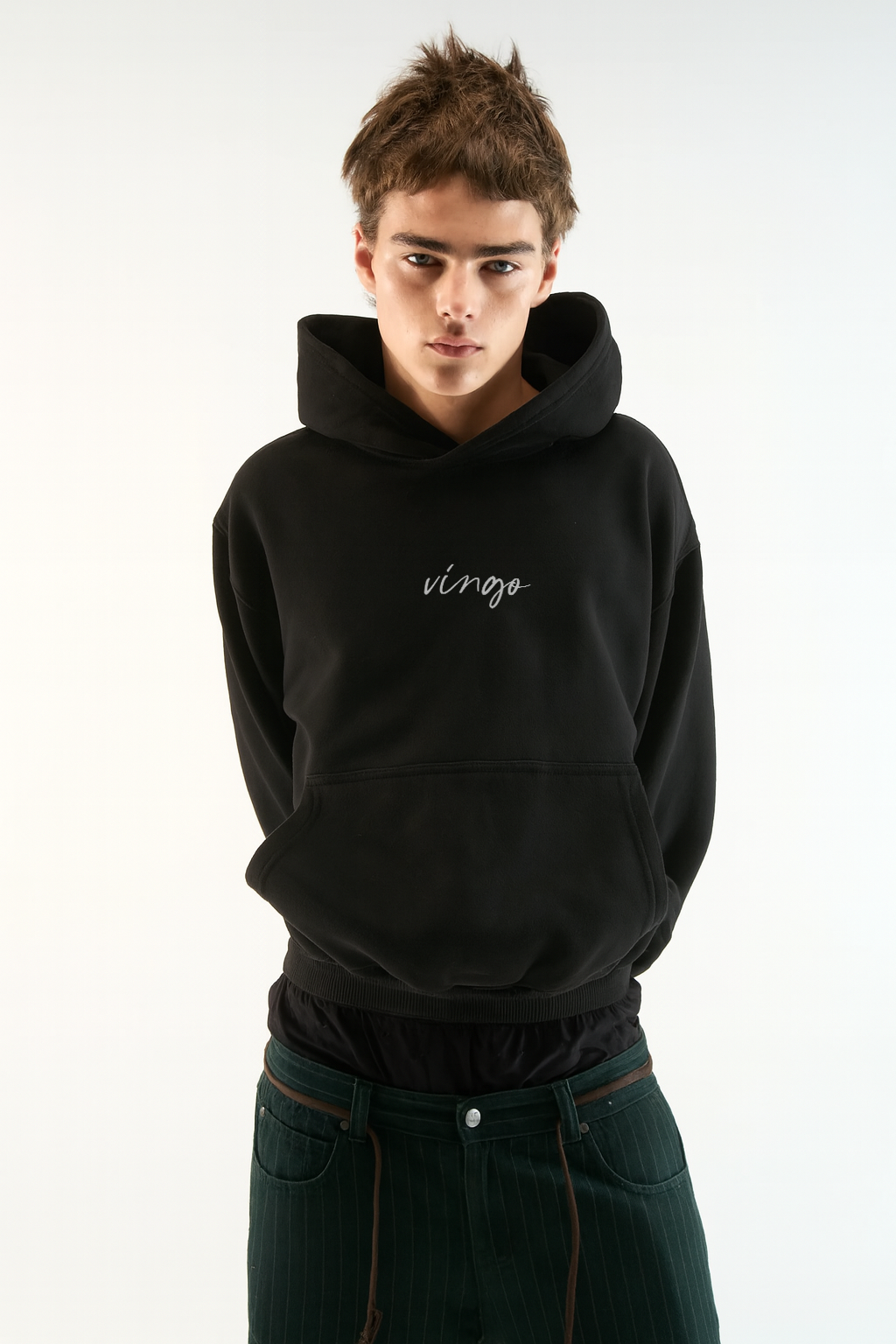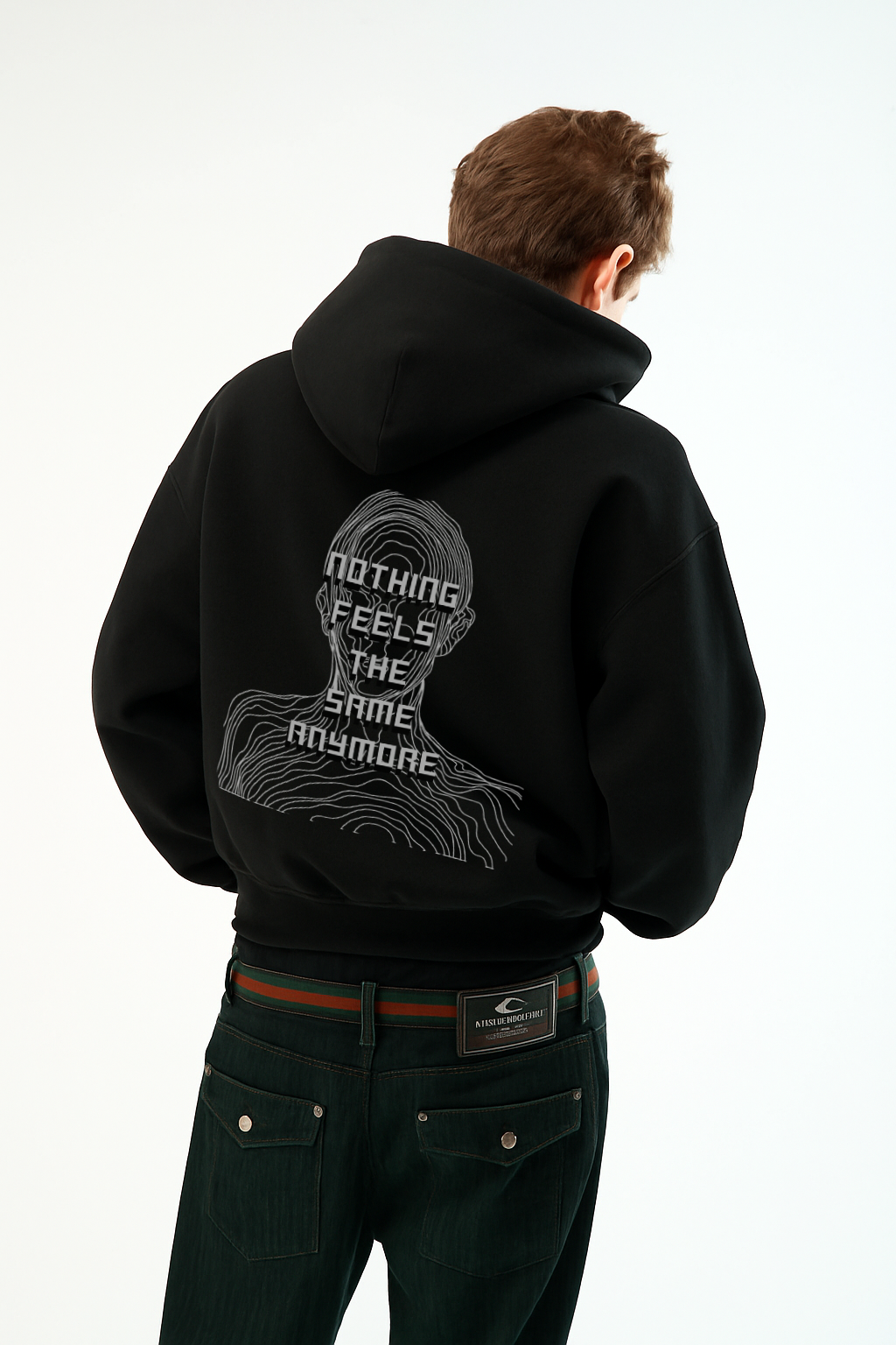 A dark oversized hoodie with futuristic lines that encourage you to embrace change, not fear it.